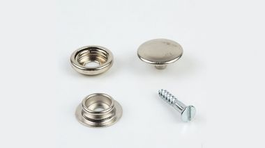Druckknöpfe aus Messing vernickelt. 4-teiliges Set bestehend aus je 1x Kappe, 1x Öse, 1x Kugel und 1x Schraube.